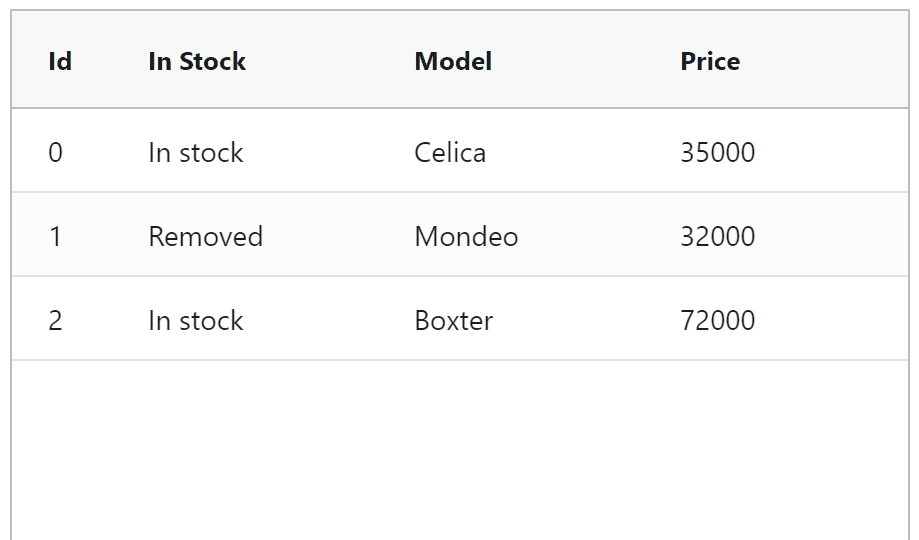 Double-click the top cell in the Model column to start editing it and enter a new value. This update gets saved to the store and the grid is then refreshed.
