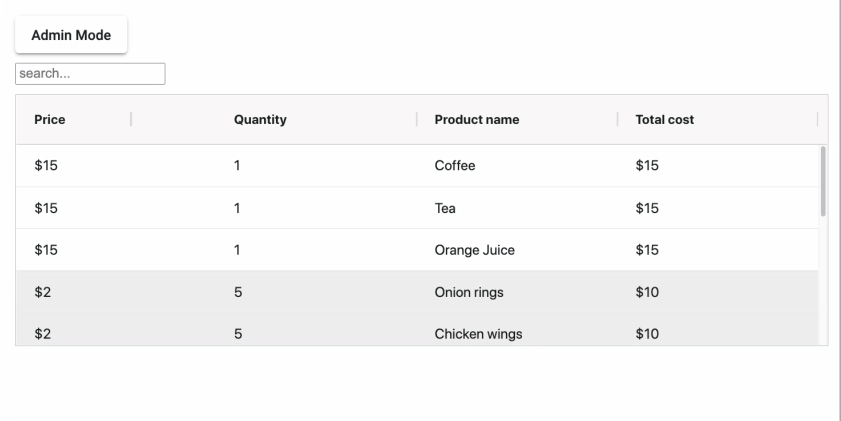 In addition to changing row data in the NgRx store, you can also load the column configuration from the store. In our example we have a button that lets you switch between Admin mode and Customer mode to display a different set of columns. This demonstrates how you can change ag-Grid columns on the fly.