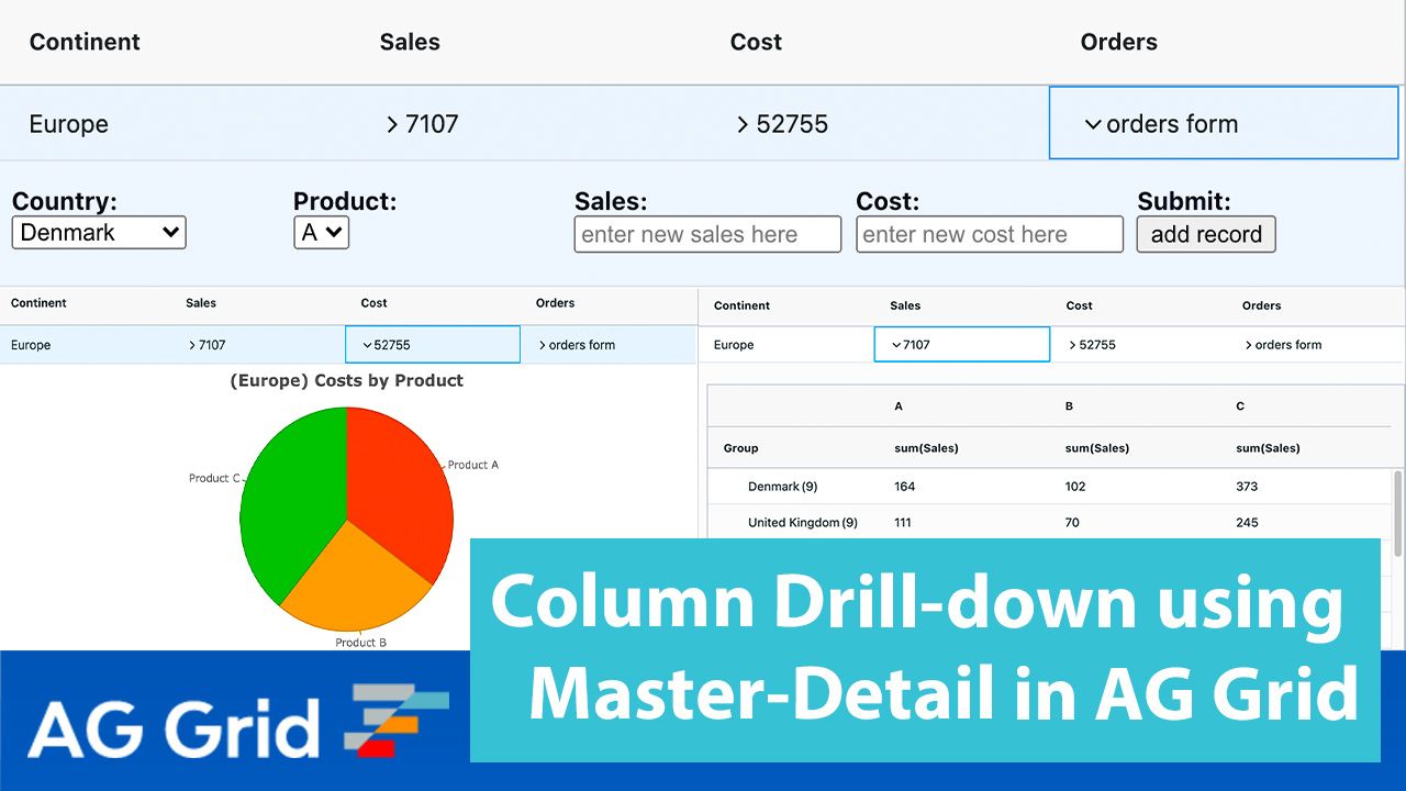 In this post, we'll show how to use AG Grid to implement column drill-down functionality by displaying different detail-level content depending on the master-level column expanded. This way you can provide your users with additional information for each master-level column, displaying more contextual information about the data.