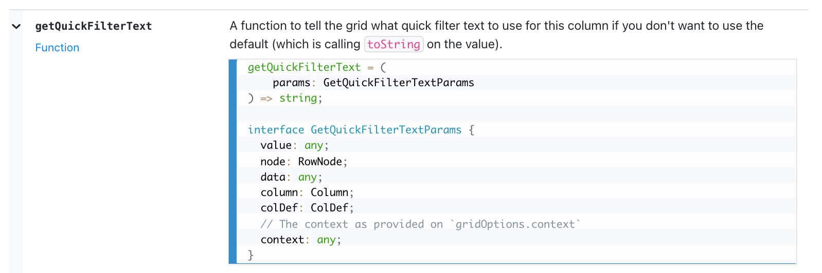 getQuickFilterText: (params: GetQuickFilterTextParams) => {