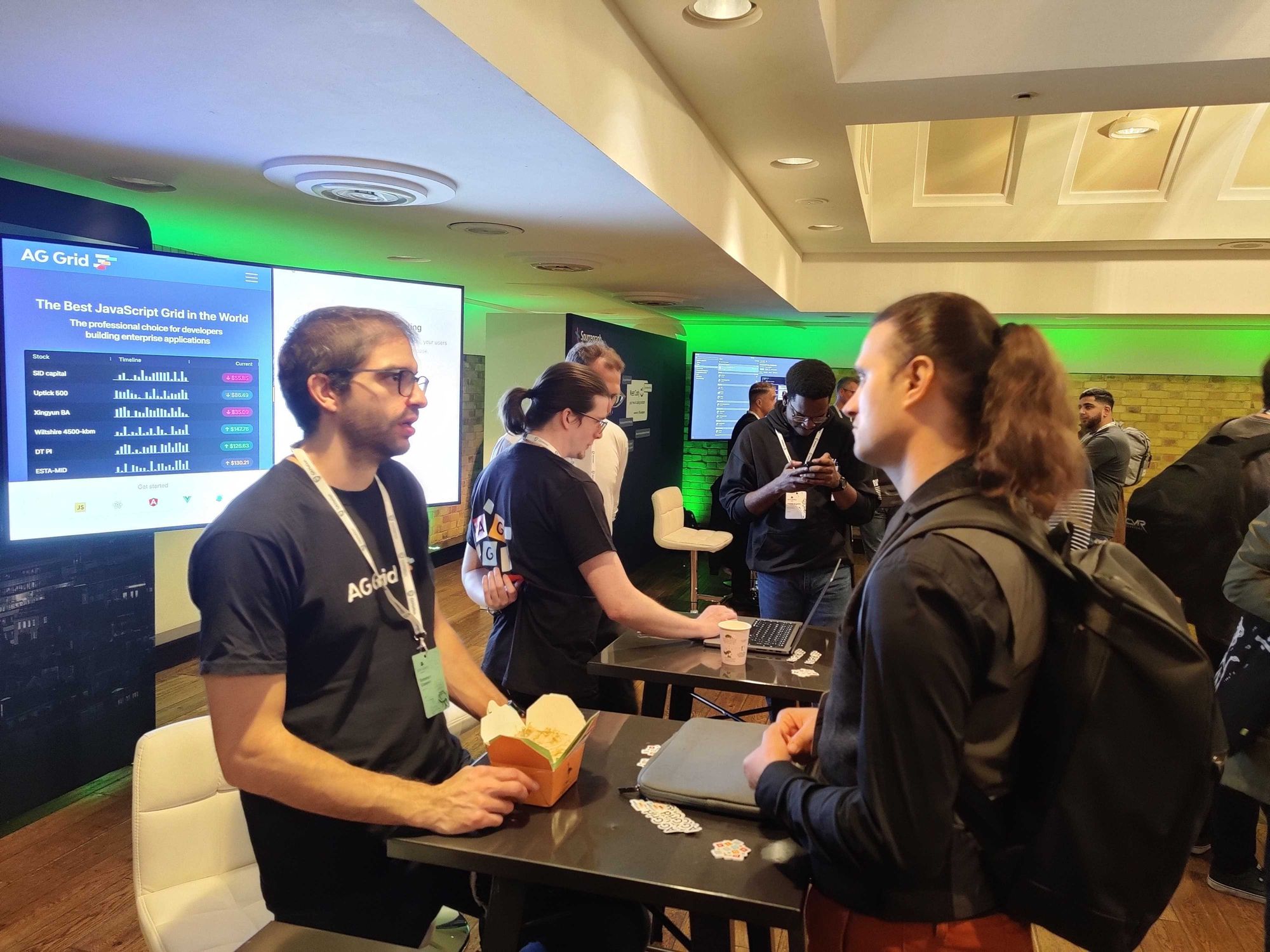 Personally, my favourite part about conferences like these is the opportunity to meet with the React community in person and React Advanced London certainly didn't disappoint. We spoke in equal measure with people who hadn't heard of AG Grid before, many of whom are now considering becoming users, as well as existing AG Grid users who were keen to share their thoughts, feedback and, much to our delight, a fair bit of praise, too.
