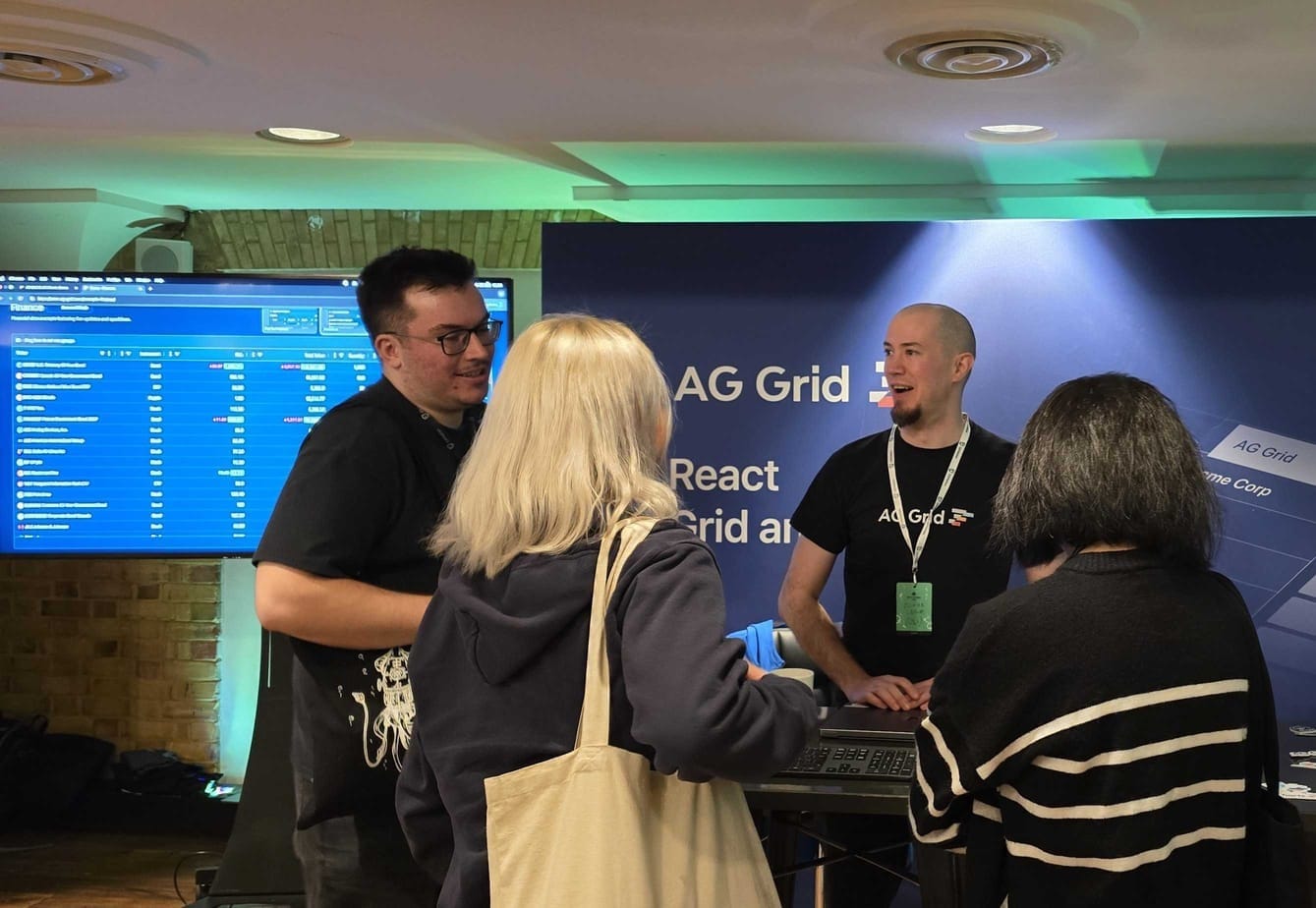 React Advanced London marked AG Grid’s third conference this year, following ng-conf and React Summit. We’re looking forward to our final event of the year, React Summit New York in November, where we’ll be continuing the conversation on high-performance data visualization in React. If you missed us in London, we hope to see you in New York for more talks, workshops, and opportunities to connect!
