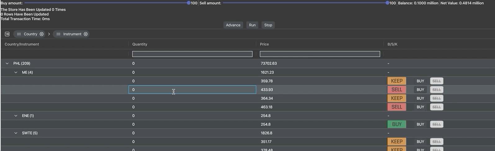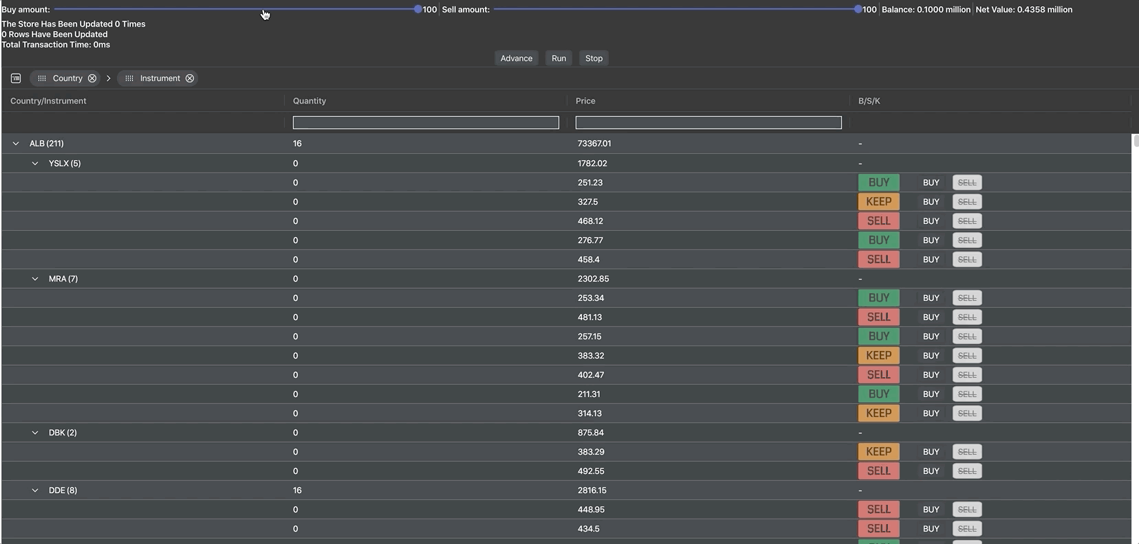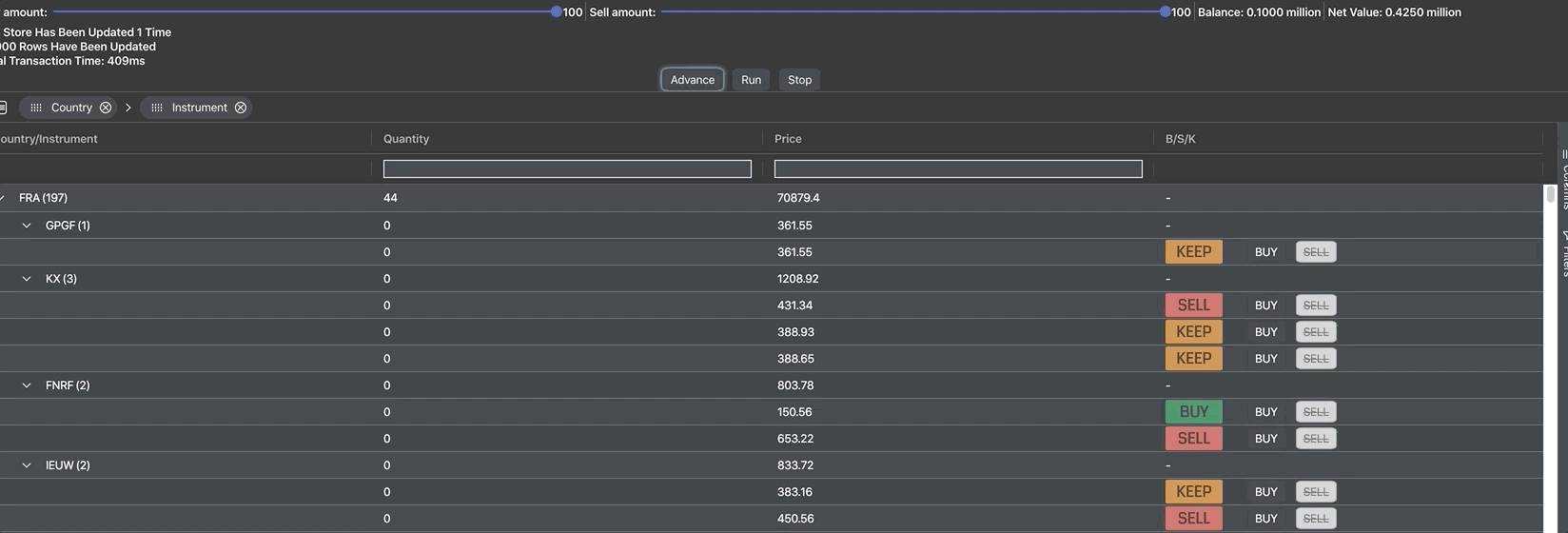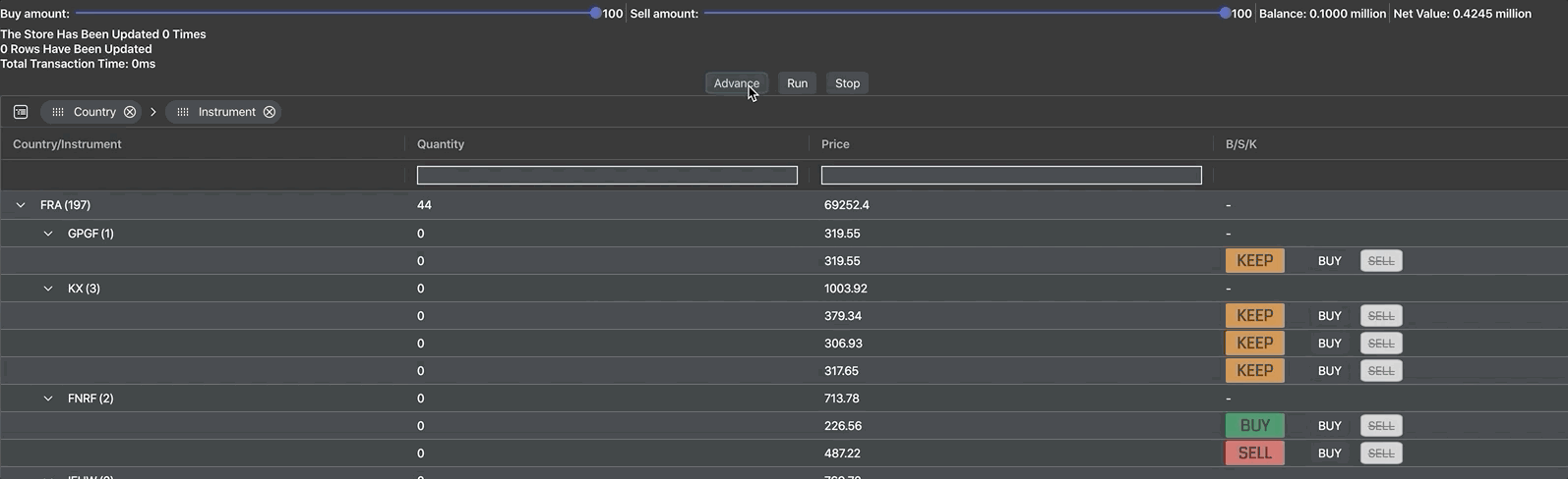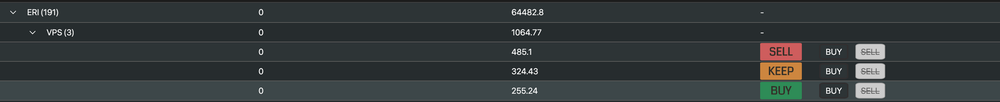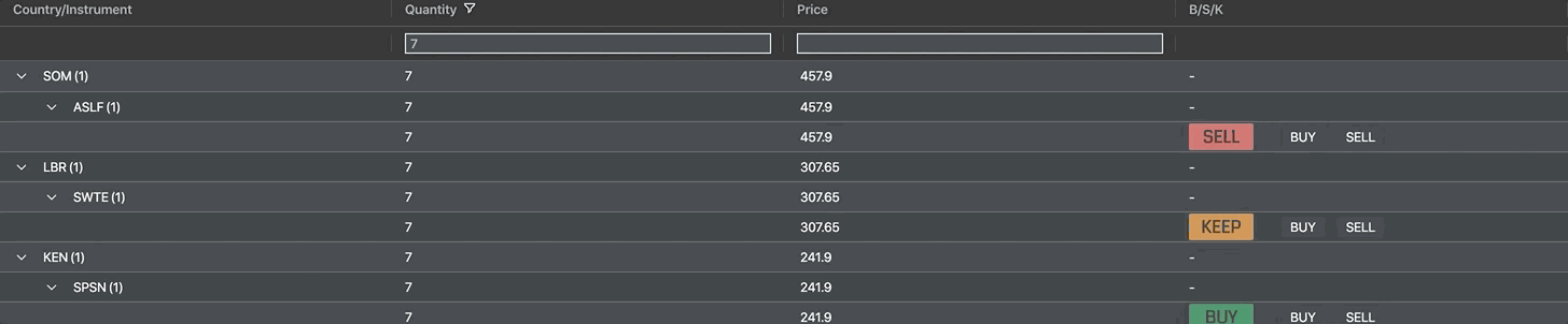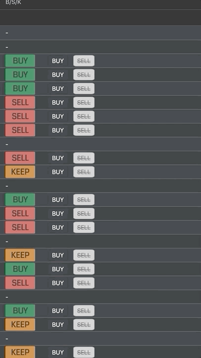 We're using a React component to display the buy/sell/keep recommendations and the buy/sell buttons seen in the B/S/K column.