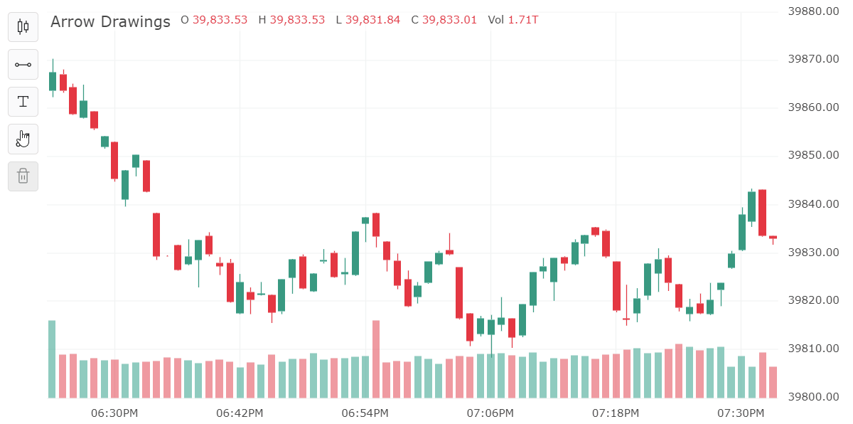 Users can add a number of Arrow Drawings to highlight particular trends or significant points in the data. This allows users to annotate the data and find important ranges more quickly.
