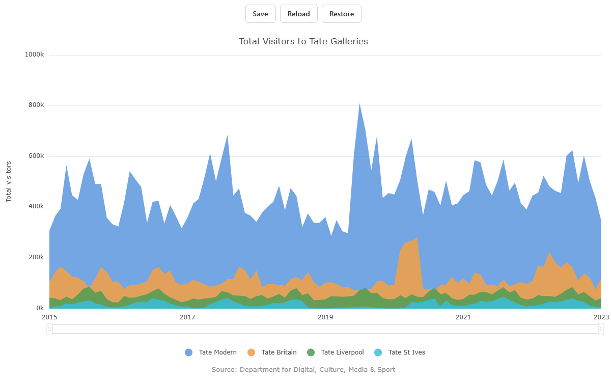 The chart state can be saved, modified and restored at runtime. This includes the zoom and legend toggle state on all charts, as well as Financial Chart annotations and chart type.