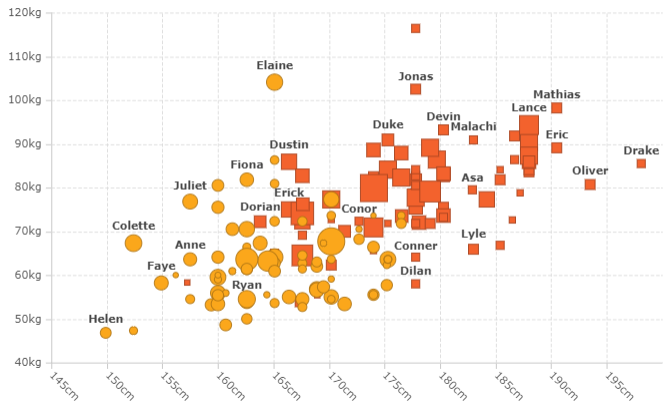 The bubble and scatter charts have label anti-collision logic ensuring a user-friendly rendering of your data, as shown below: