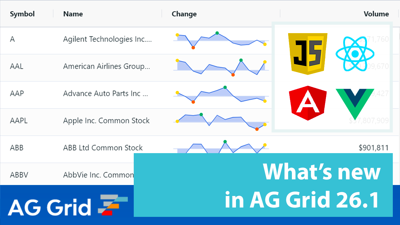 AG Grid 26.1 is a minor release with major improvements across a number of different areas. In this post, we'll highlight the major enhancements that make AG Grid 26.1 an important step forward in terms of new functionality, quality and accessibility support.