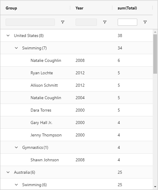 AG Grid 27.2 allows users to filter row groups based on their aggregated values shown in the grid. This helps to easily identify row groups of interest, especially in datasets with many row groups, as shown in the recording below: