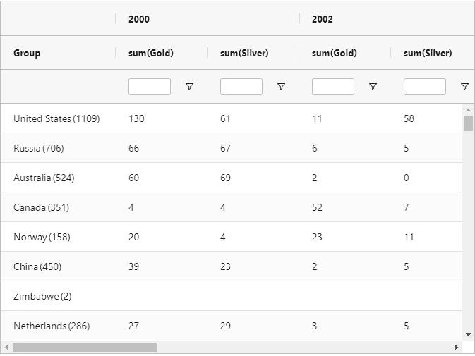 AG Grid 27.2 allows users can now filter in secondary columns when pivoting as described in our documentation. This helps users quickly find the row groups they're looking for, as shown below: