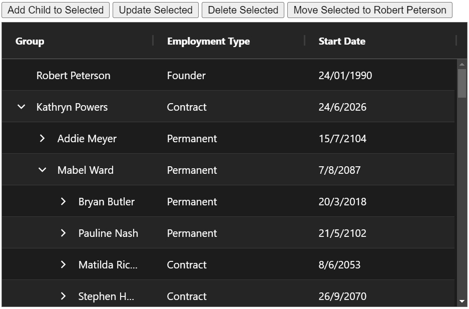 You can also edit tree data group rows cells when using the server-side row model, which allows your users to edit data for group rows directly in the grid.