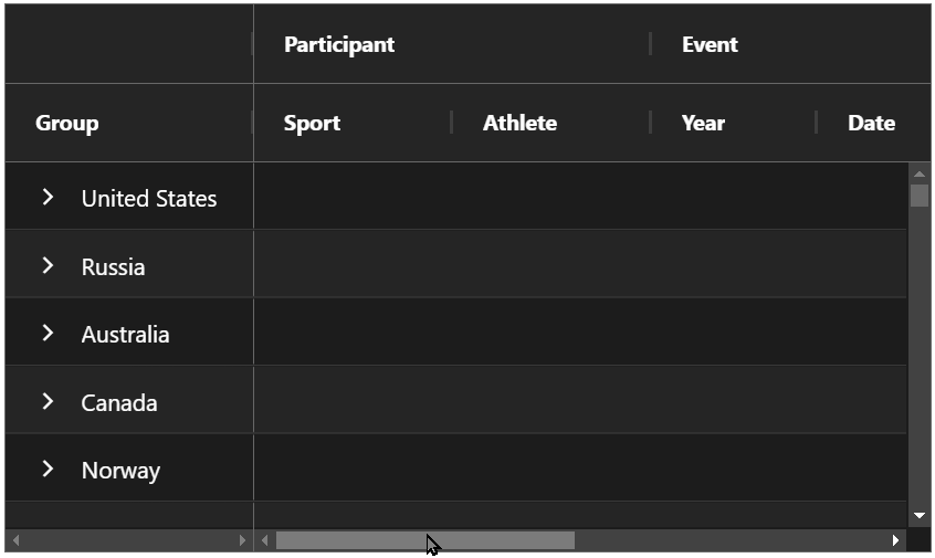 Horizontal Sticky Column Group Headers