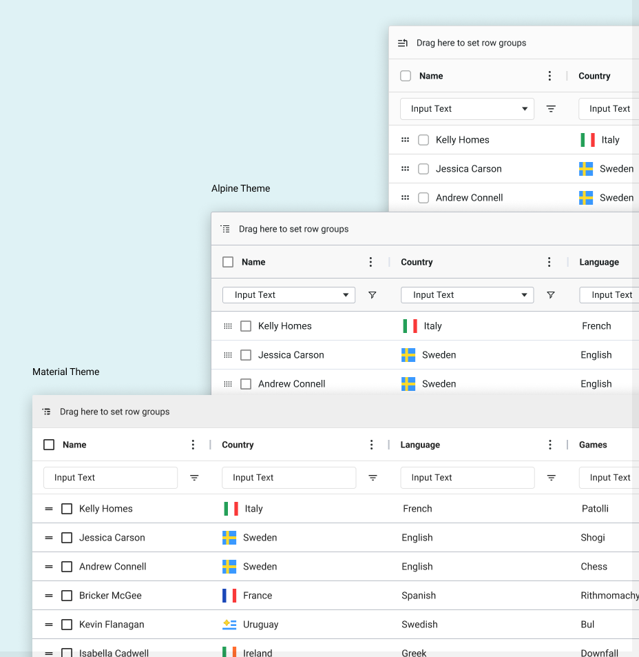 AG Grid 31.2 adds the Material theme to the Figma Design System. This allows you to use the Material theme in your Figma designs and to easily compare appearance across themes along with the rest of your design.