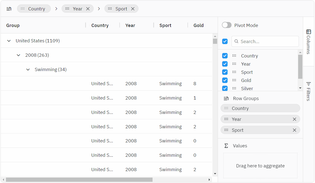 AG Grid 31 allows locking Group Columns, which prevents users from ungrouping or reordering group columns via any means a specified number of group columns. Learn more about this new feature here and see it demonstrated below: