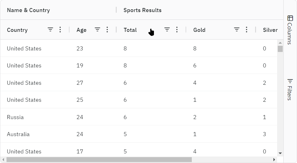 This functionality allows users to clearly see where the dragged column will appear before it's actually moved there. This enables users to more precisely arrange columns and avoid any inadvertent column reordering. In this mode, users can cancel the column move before the column is dropped in its new location by pressing the Escape key.