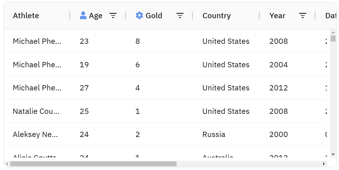 AG Grid 33 allows to provide custom column header and group column header content to quickly set the appearance of column headers. This enables the customization of cell content while using the built-in default column header and group column header features such as a filter buttons, column menu button, etc.