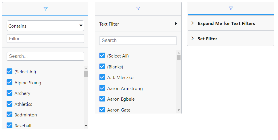 The multi-filter allows to combine multiple filter types in the same column filter. See it in action below: